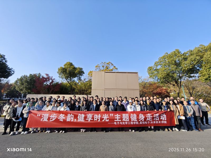 為迎接學院黨代會勝利召開,讓全體教職工在自然中放松身心、在運動中凝聚力量,11月26日下午,電子與光學工程學院、柔性電子(未來技術)學院工會精心策劃“漫步冬韻,健享時光”主題健身走活動,組織全院教師走進羊山公園,共赴一場冬日美景與健康活力的雙向之約。下午三點,參與活動的教師們齊聚公園入口廣場,臉上洋溢著期待與喜悅。學院黨委書記黃麗亞致辭,她表示,此次健身走活動既是響應“全民健身”號召、關愛教職工身心健康的暖心舉措,也是學院以團結奮進風貌迎接黨代會的生動實踐。“希望大家在漫步中欣賞冬景、在同行中增進情誼,把運動帶來的活力與激情,轉化為教書育人、干事創業的強大動力,共同為學院高質量發展蓄力賦能?!敝罗o結束后,教師們邁著矯健的步伐有序啟程,沿著蜿蜒的環湖步道展開了一場與冬日的親密邂逅?;顒咏Y束后,教師們在公園入口處集體合影。此次健身走活動全程約5公里,路程雖不算長,卻讓老師們在繁忙的工作之余,走出了校園、走進了自然,既鍛煉了身體、舒緩了壓力,更增進了彼此間的溝通與情誼。電子與光學工程學院、柔性電子(未來技術)學院工會未來將繼續聚焦教職工需求,秉持“服務教職工、凝聚向心力”的宗旨,組織更多形式